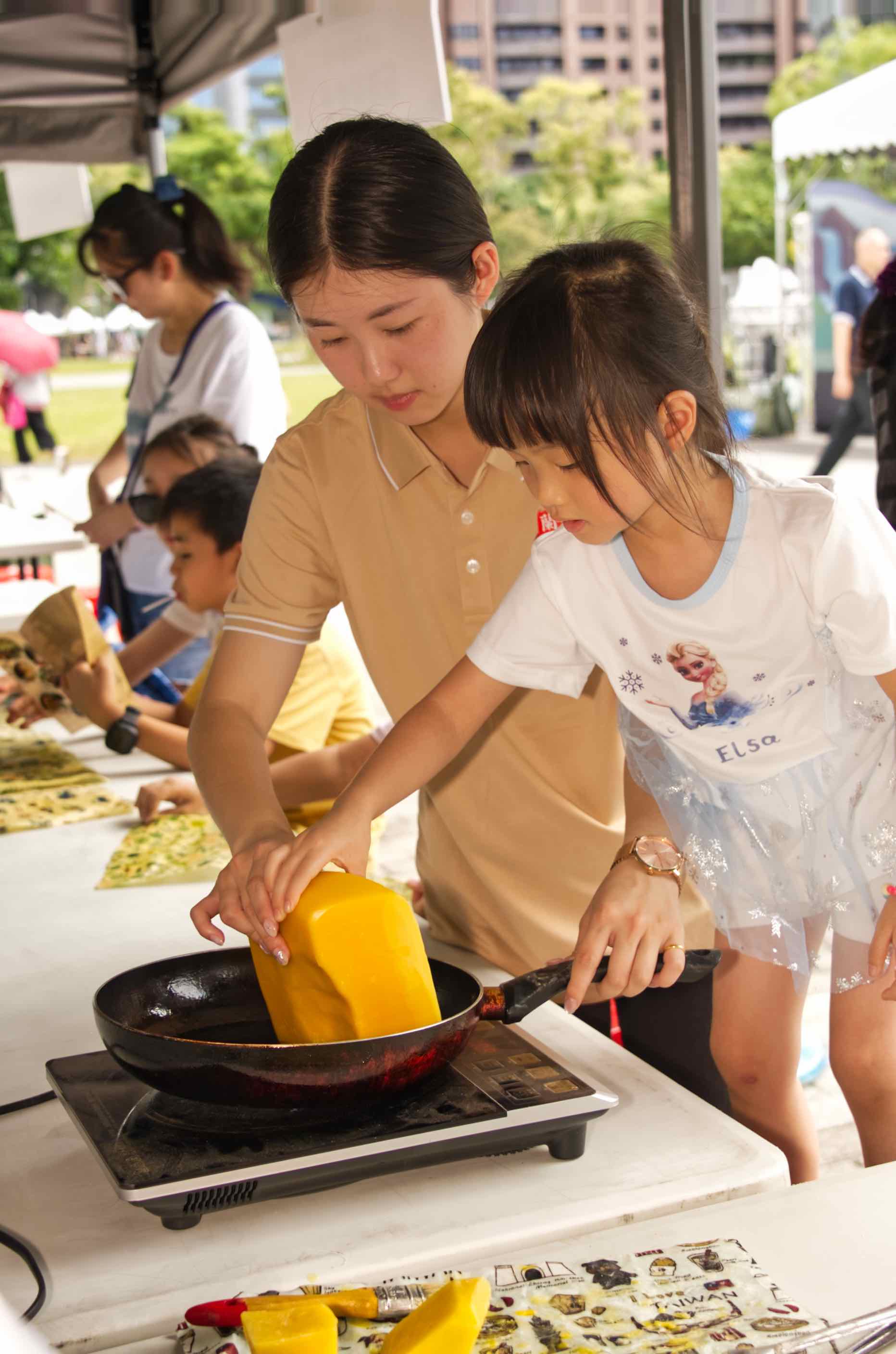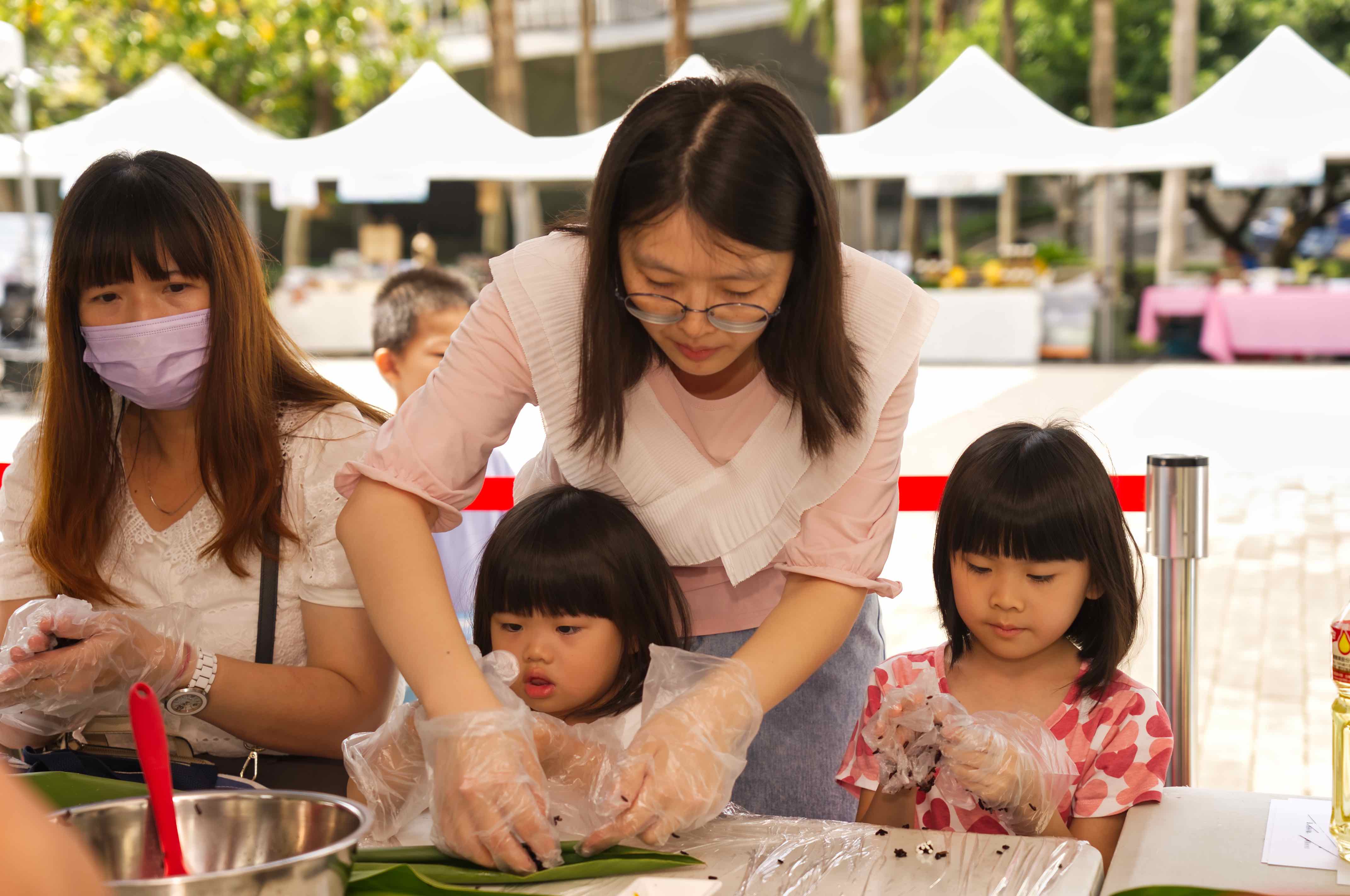 食農體驗區讓孩子們動手捏黑白飯糰、品蜂蜜、做蜂蠟布,寓教於樂超有趣!