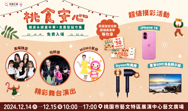 桃園市政府農業局與衛生局攜手合作,辦理 2024桃食安心 健康永續嘉年華 食農聖誕市集
