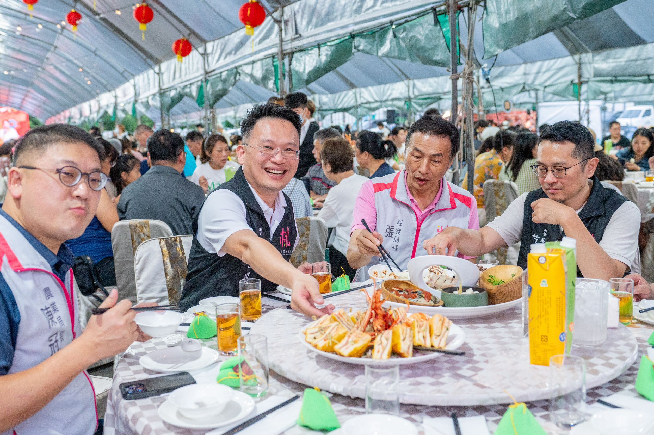 桃園市副市長蘇俊賓今(16)日晚上前往桃園區,出席桃園閩南文化節─「總舖師辦桌活動」。蘇副市長表示,今(113)年辦桌共100桌,在6月5日中午一開賣就被秒殺,比張學友及Energy的演唱會還難搶。而且夏天辦桌最怕熱,而今天傍晚吹著涼風,可以說全年來最適合辦桌的天氣。蘇副市長特別恭喜參加的民眾都有著滿滿的好運氣。