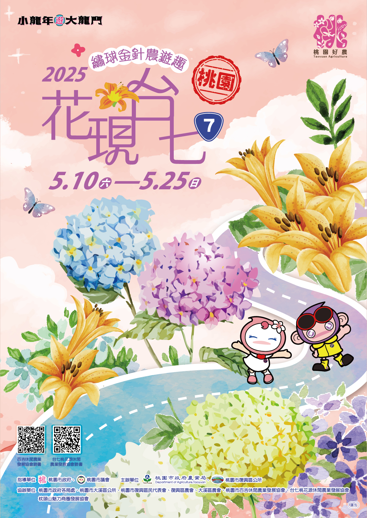 桃園市政府農業局長陳冠義表示,今年「花現台七-繡球金針農遊趣」橫跨3個週末,周周都有精彩亮點活動。5月10日開幕式搶先在台七桃花源休閒農業區枕頭山商圈主會場舉辦;11日在百吉休閒農業區則有母親節親子活動-百變精靈大集合,當天只要裝扮融入花元素即可參加報名,冠軍獎金5000元(https://www.accupass.com/go/t705111);5月17、18日邀您聆聽音樂饗宴、欣賞夢幻泡泡魔術(百吉休閒農業區);24、25日則有枕頭山購樂趣以及三民社區復興好竹藝啡茶不可活動(台七桃花源休閒農業區枕頭山商圈)。