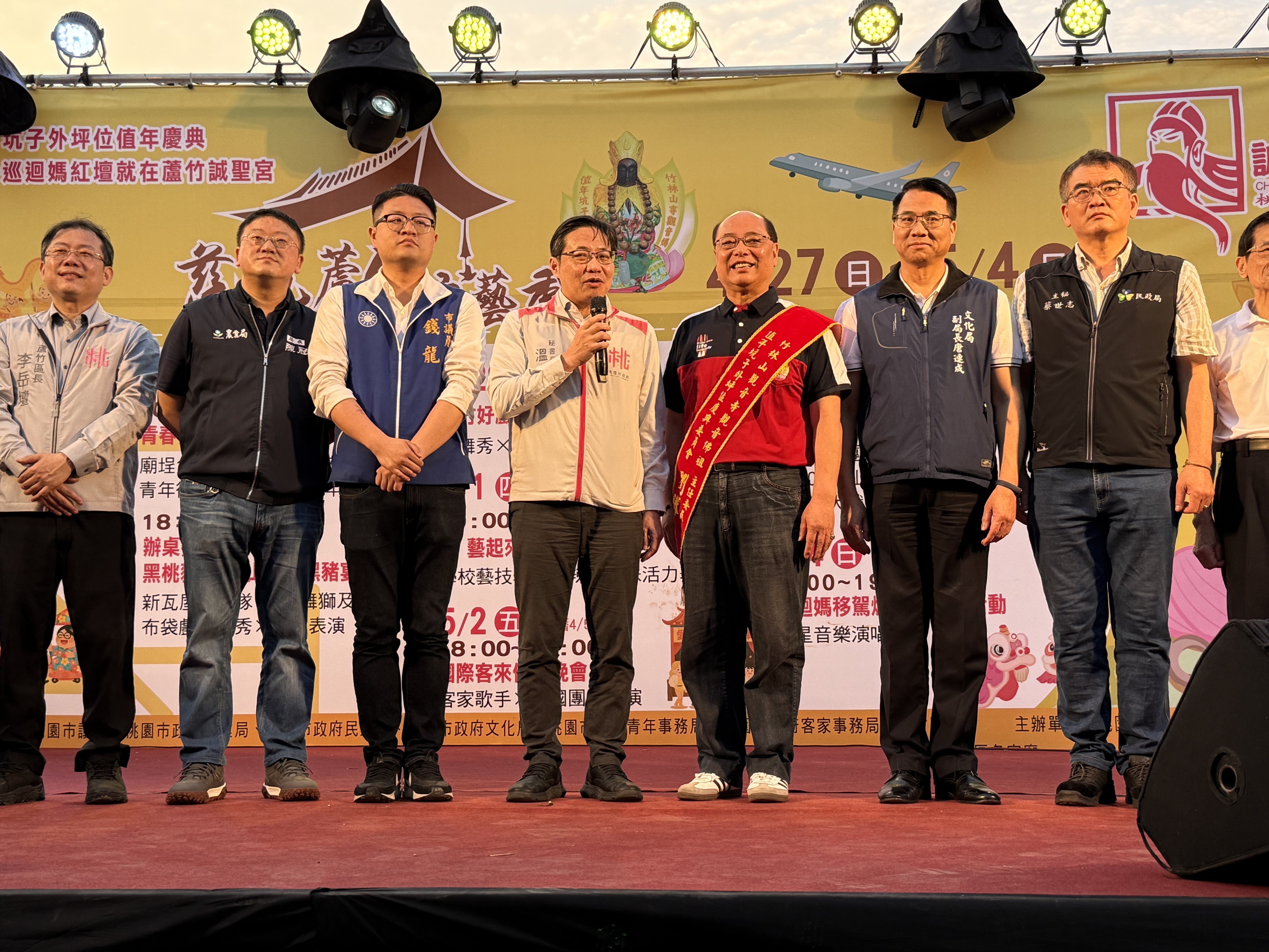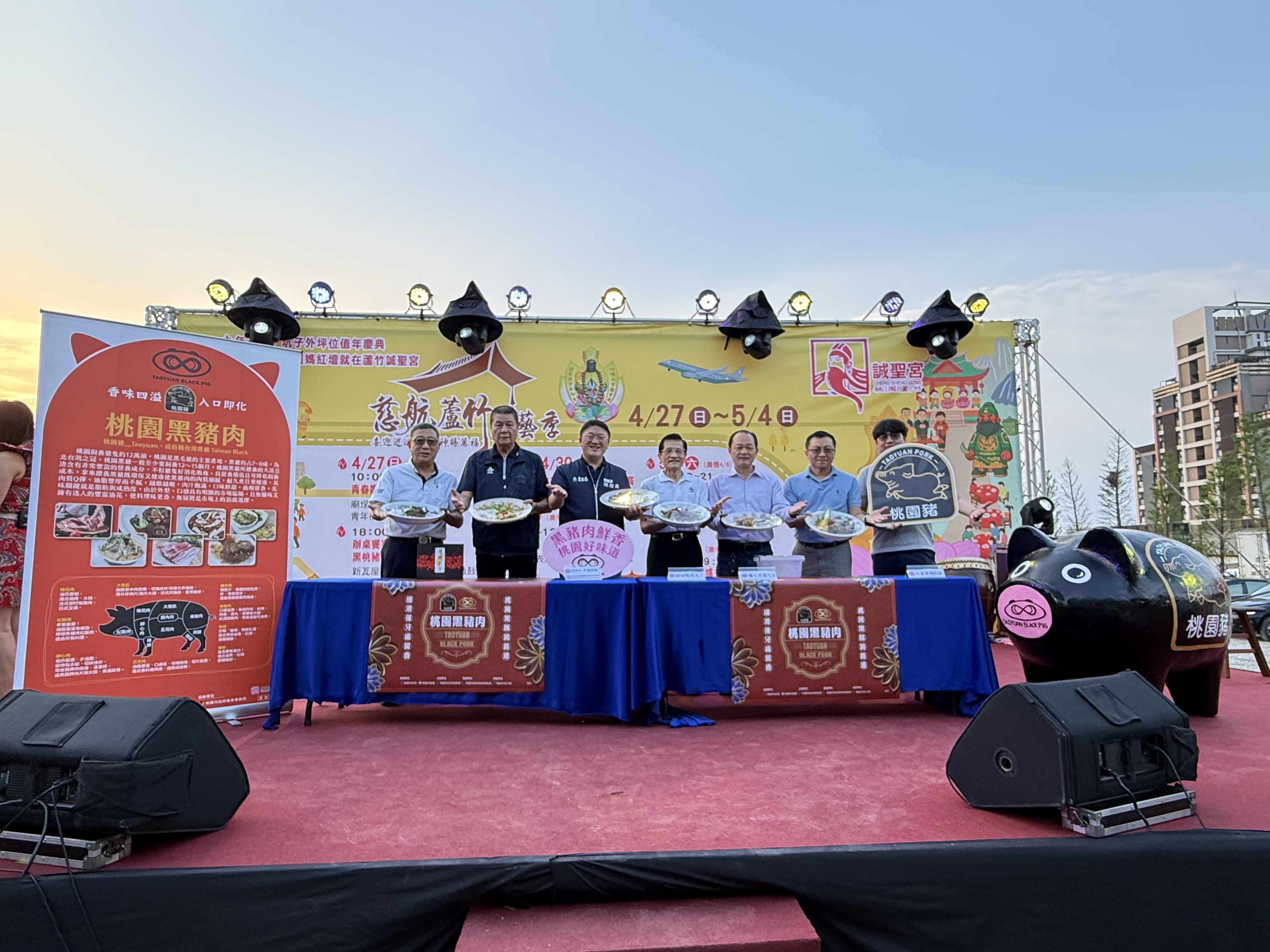 桃園市政府農業局積極推廣桃園特色黑毛豬,不僅成為全市學生的營養午餐佳餚,更首次結合竹林山「觀音媽過頭」巡迴輪值傳統宗教慶典「慈航蘆竹文藝季」,推出「黑桃豬-竹林山珍饌黑豬宴」,27日晚間於誠聖宮席開250桌,桃園黑豬入菜平安福宴,以平安食福概念力推地產優質黑豬肉。