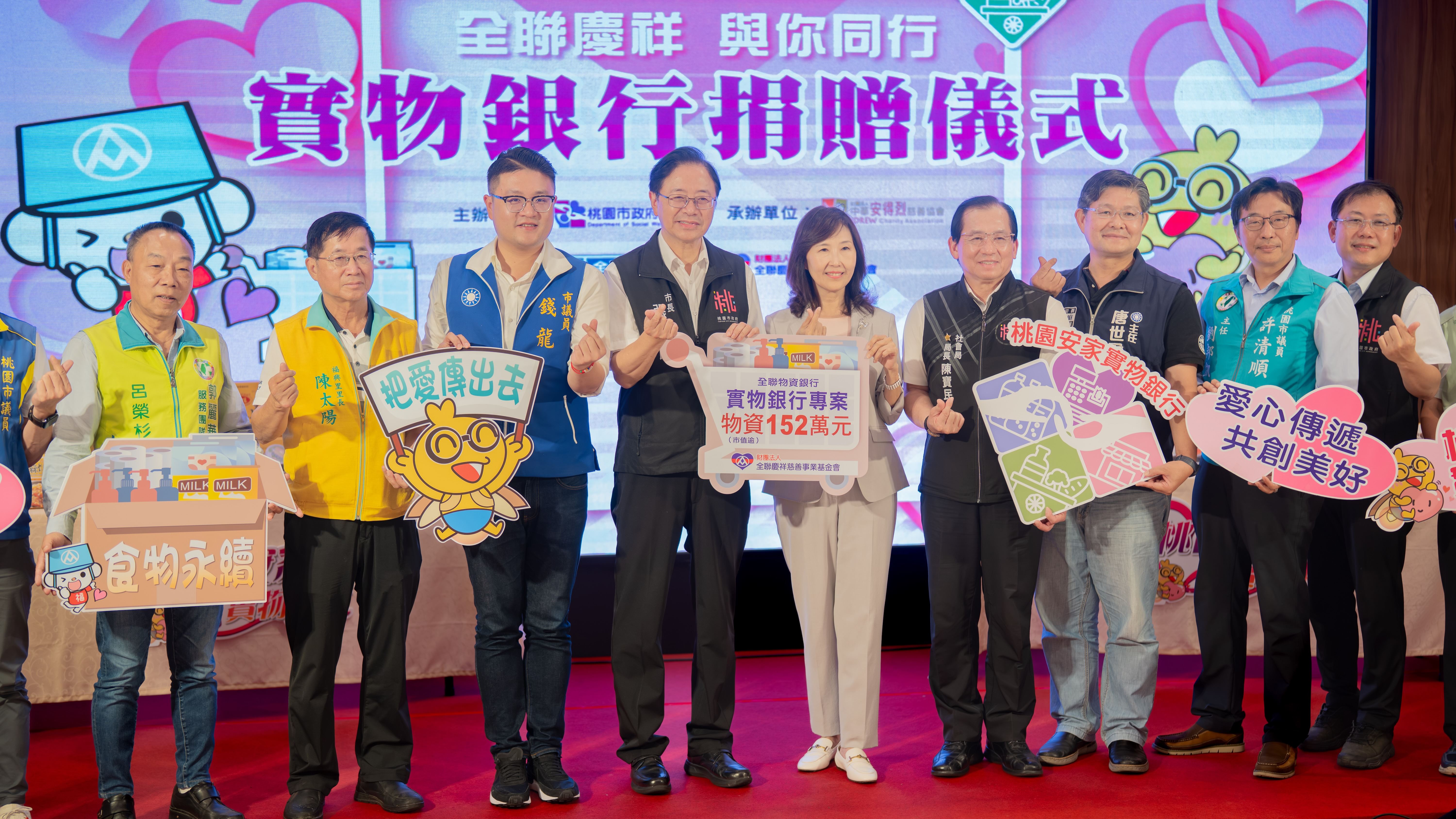 桃園市長張善政今(11)日下午前往蘆竹區,出席「全聯慶祥慈善事業基金會物資捐贈儀式」。張市長表示,全聯慶祥慈善事業基金會自106年起與市府攜手合作,長期捐贈生活物資予弱勢家庭,累計金額已逾1,130萬元,協助無數家庭度過生活難關,今(114)年捐贈物資市值超過152萬元,充分展現企業積極投入公益、關懷社會的精神。張市長也感謝基金會長年深耕在地,持續捐贈物資,溫暖弱勢家庭,成為市府推動社會福利的重要後盾之一。