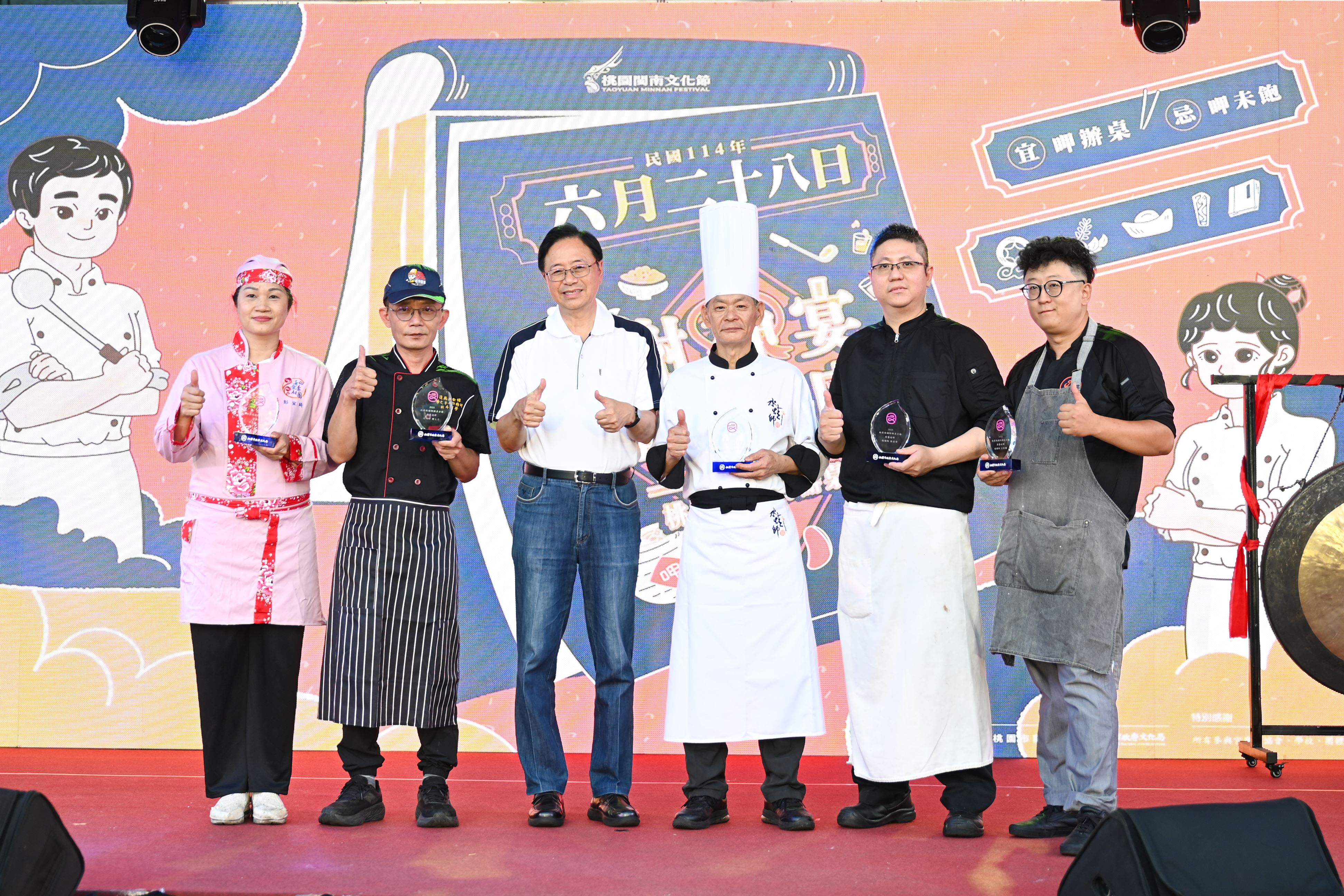 桃園市長張善政今(28)日下午前往新永和市場,出席「2025桃園閩南文化節-總鋪師辦桌」,並頒發感謝狀給5名精心設計辦桌佳餚的總鋪師們。張市長表示,今(114)年總鋪師辦桌以「謝神宴」為主題,邀集臺灣南北5名知名總鋪師率領團隊,端出10道用心設計的料理,希望市民朋友在享用美食的同時,也懷抱感恩之心,感謝神明庇佑桃園平安順利。