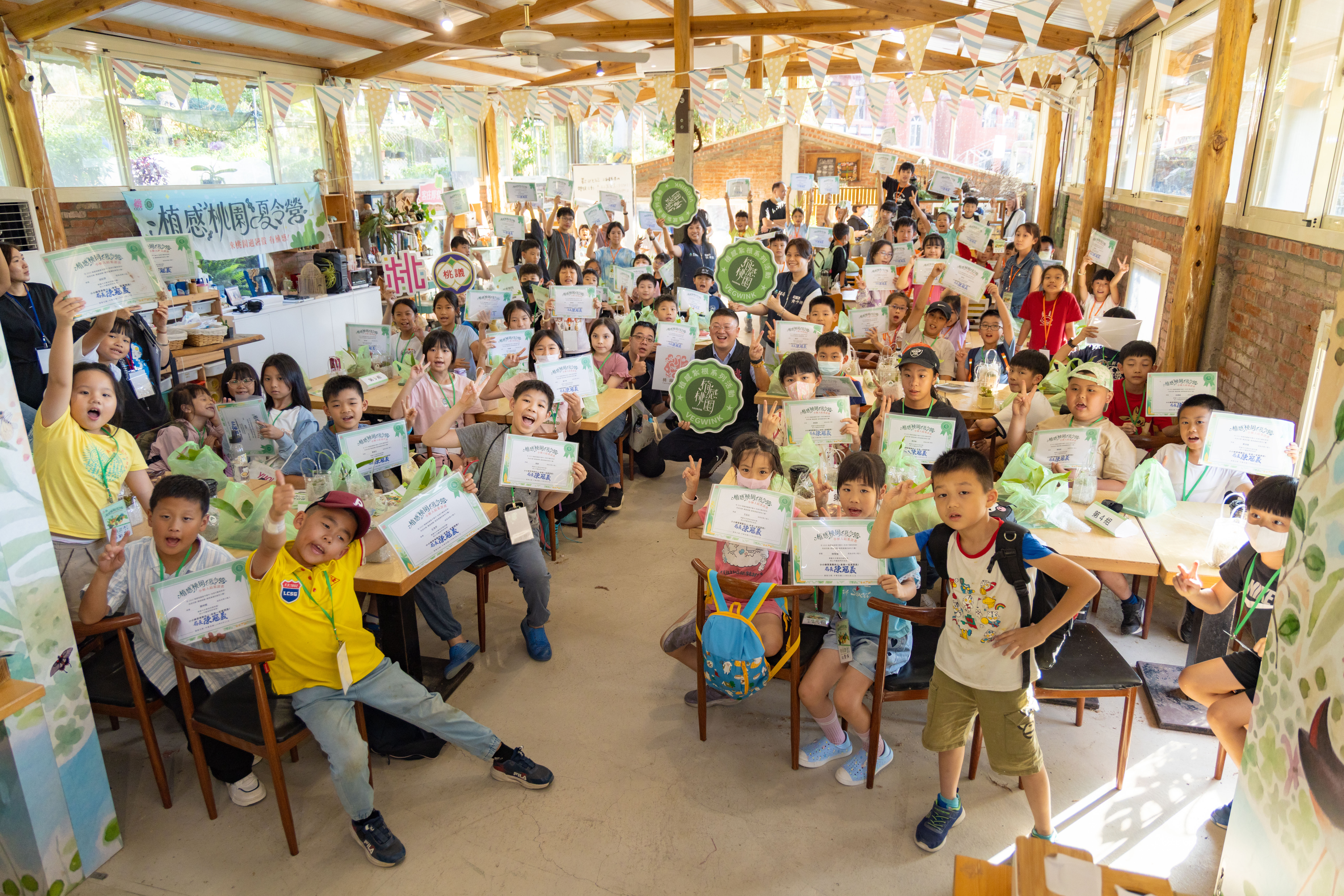 桃園市政府農業局主辦《植感桃園夏令營》,21日圓滿落幕,共有80名國小三至六年級學童參與。營隊結合茶文化體驗、多肉植物DIY與鹿角蕨手作遊戲,帶領孩子走進土地、感受綠意,並將「桃園有植感」的品牌精神融入日常體驗。