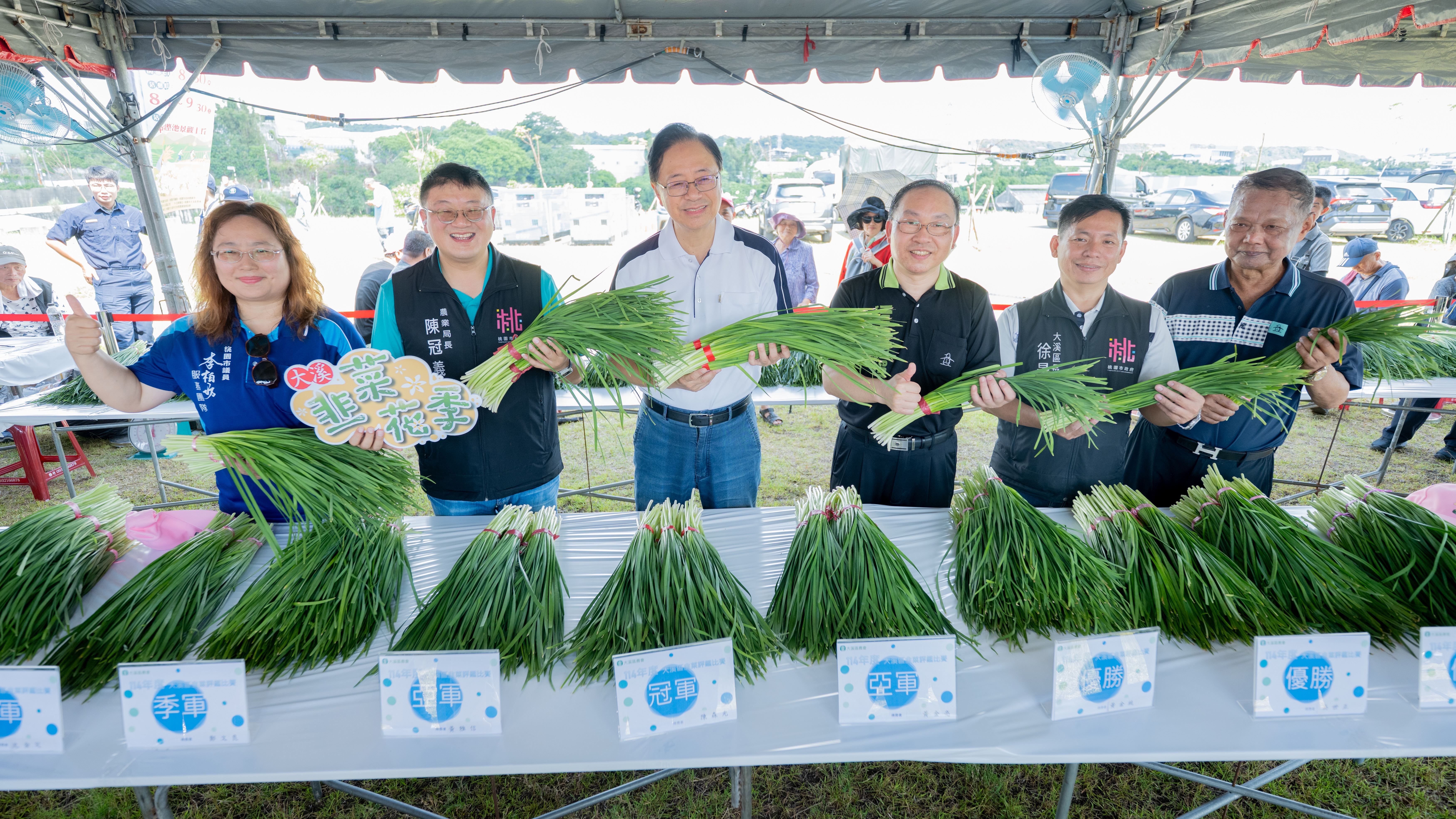 桃園市長張善政今(30)日上午前往大溪區,出席「114年度大溪韭菜花季—繽紛九月雪暨農特產嘉年華」,並頒發綠竹筍及韭菜評鑑獎項。張市長表示,大溪韭菜花每年九月盛開,素有「九月雪」美譽,綠竹筍亦同時進入產季,展現大溪農業多元風貌。現代農業重視精緻與高價值,而非單純追求產量,正如大溪出產的韭菜與綠竹筍,皆以優良品質成為精緻農業的代表,恭喜大溪農友今(114)年大豐收,並歡迎國人到大溪中庄下崁欣賞九月雪美景,品嘗在地農特產美味佳餚。