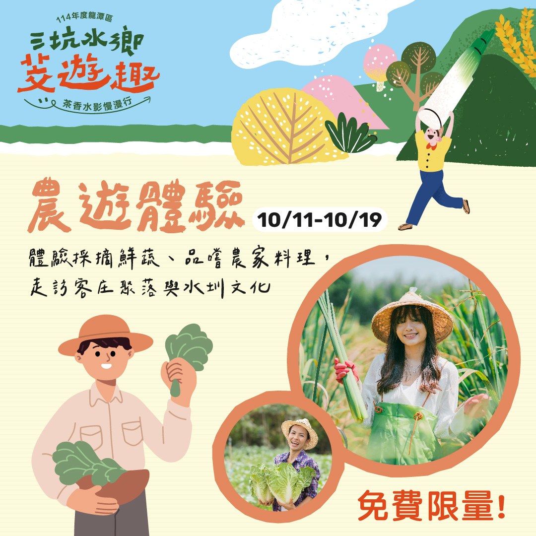 採摘鮮蔬、品嚐農家料理,走訪聚落與水圳文化。