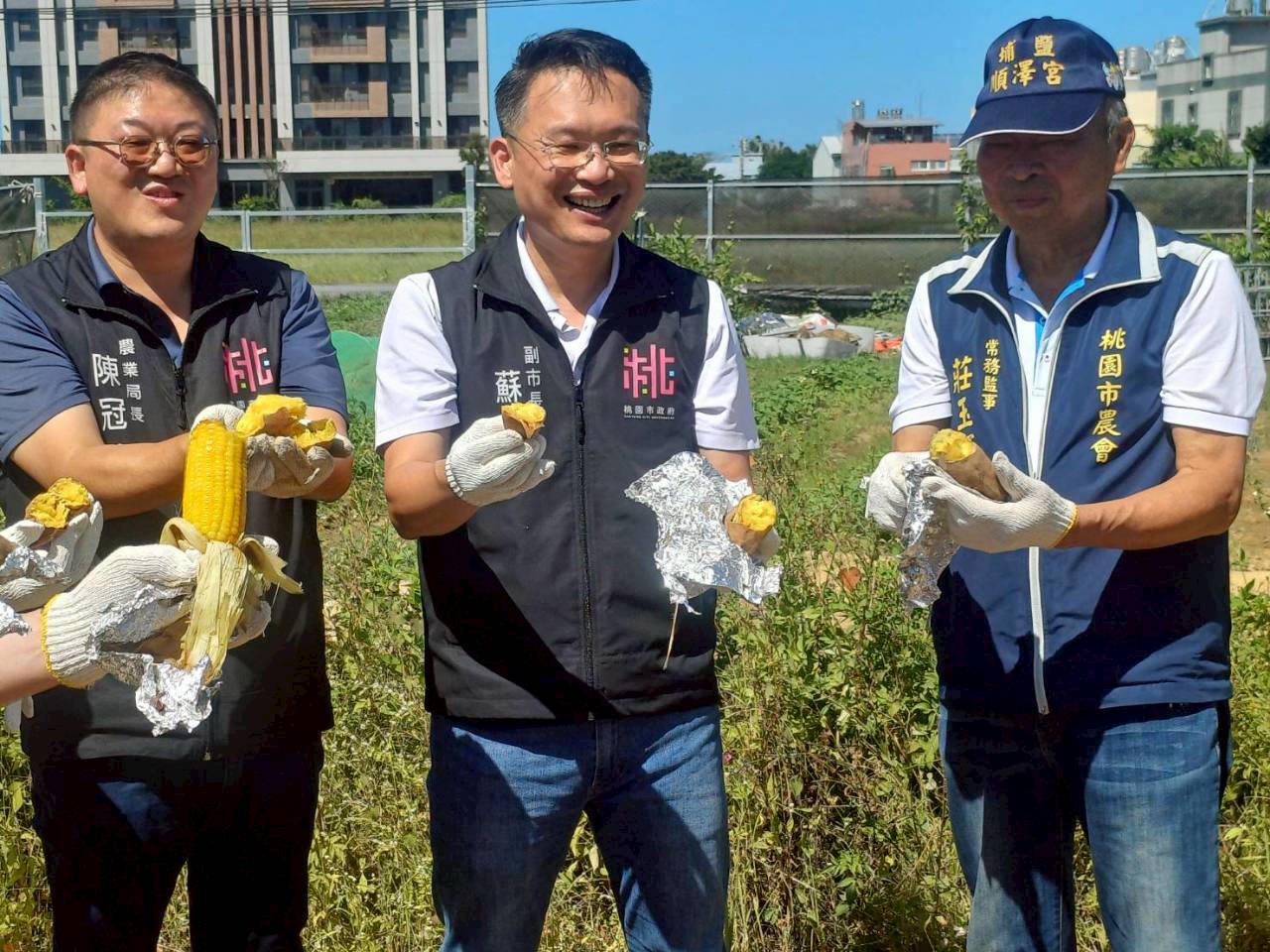 「大園甘藷節」活動18日於大園溪海休閒農業區熱鬧登場,桃園市副市長蘇俊賓出席與現場民眾一同體驗農村傳統文化「焢窯、開窯」,用行動力推桃園在地優質甘藷。蘇俊賓表示,大園甘藷節舉辦超過10年,在農友細心栽培下,孕育出許多優質的地瓜,今天也進行大園甘藷達人頒獎,未來在市府、農會及農友的合作下,將會種植出更多更優質的甘藷,供民眾大飽口福。