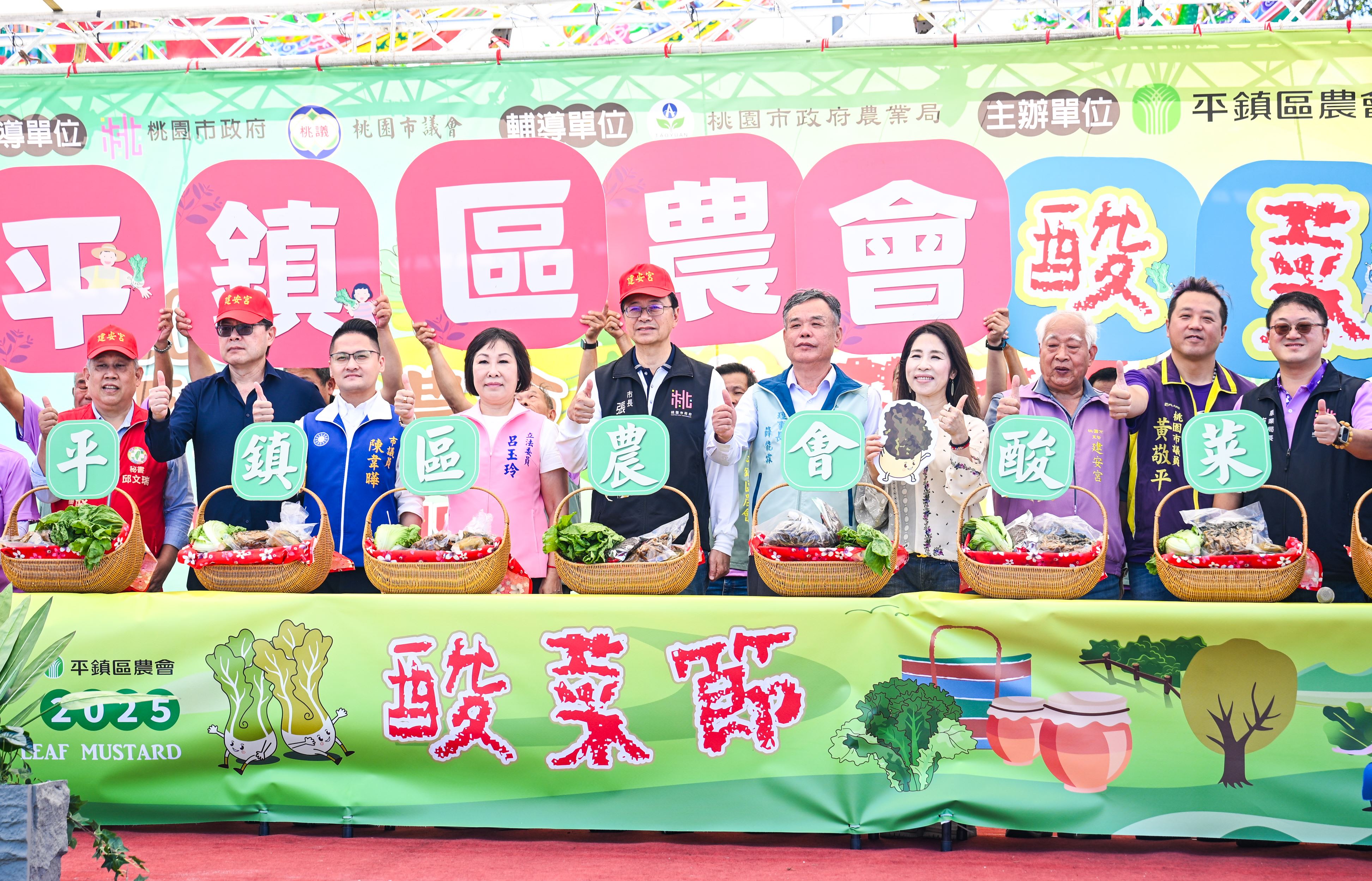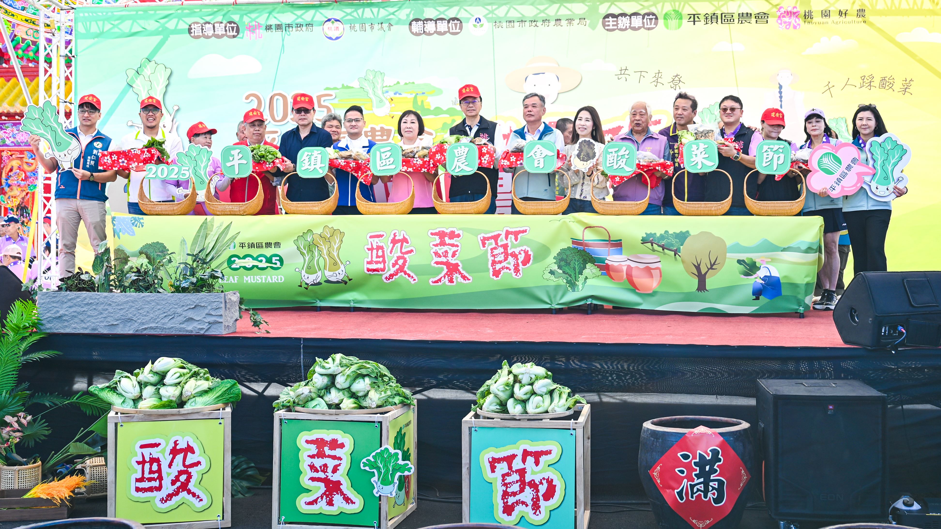 桃園市長張善政今(15)日上午前往平鎮區,出席「2025平鎮區酸菜節」。張市長表示,「千人踩酸菜」是平鎮區農會最具代表性的年度盛事,酸菜充分展現地方獨特的客家飲食文化,市府將持續支持在地特色產業發展,讓客家風味與在地農業相得益彰。