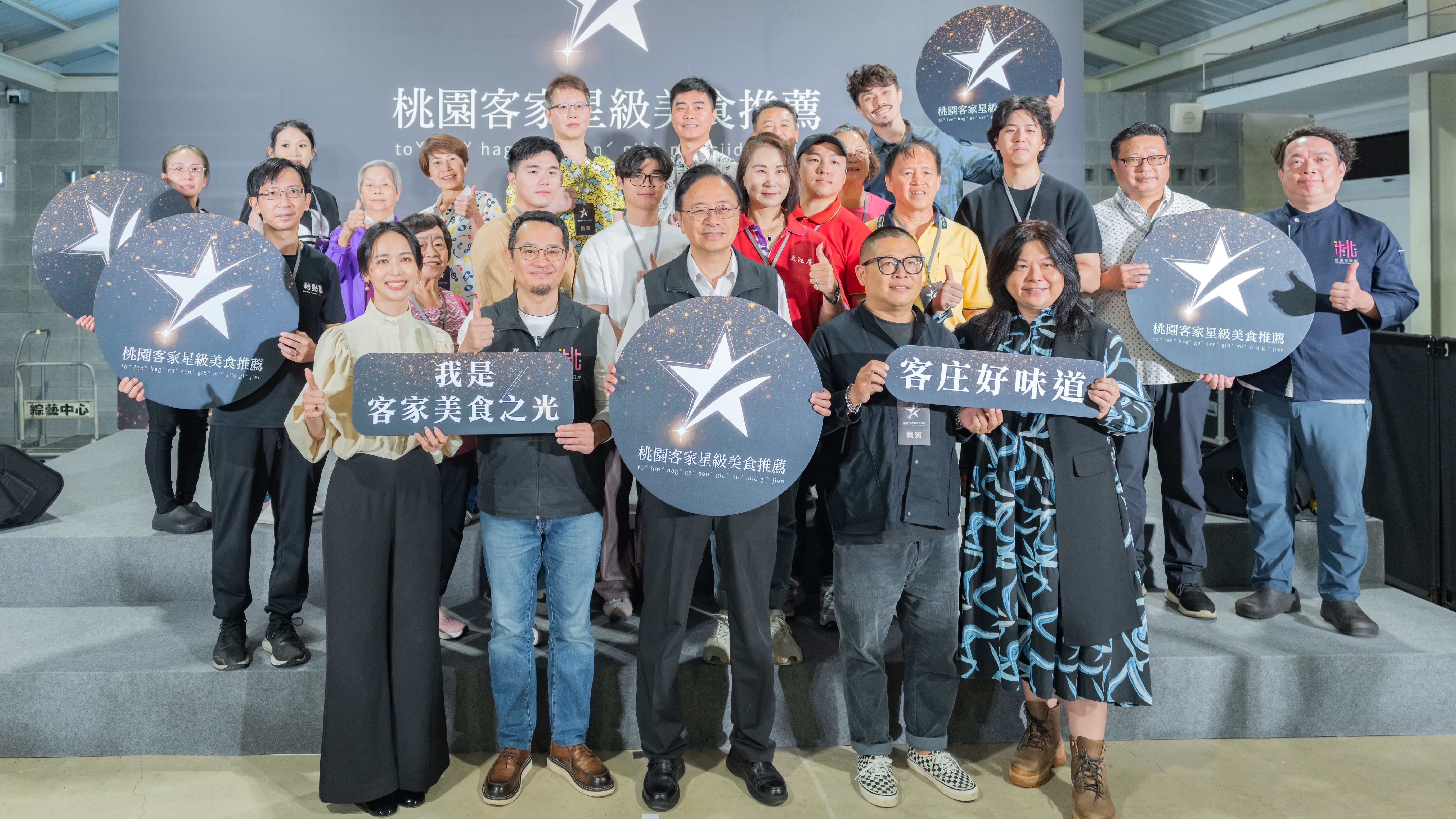 客家局表示,今年首度以「星級美食推薦」為主題,結合名人影響力與話題性,展現桃園客家美食的多元風貌。活動邀請15位藝人、料理達人及美食部落客組成推薦團隊,以「秘密客」身分走訪在地店家,品嘗人氣料理並各自推薦5道最鍾愛的菜色,最終共有46家店家脫穎而出,入選年度「星級推薦名單」。
