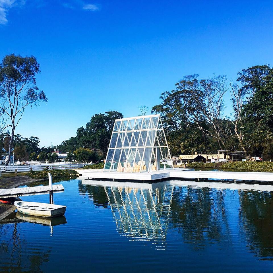 草地上幸福的地景,精心打造的的人工湖泊,岸邊依傍的小船,水中央的玻璃教堂,伊人宛在水中央的朦朧,阿!願執子之手與之偕老!
