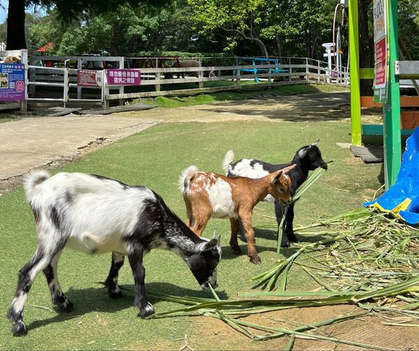 走在草地林蔭間的小羊兒,悠哉漫步在園區的羊駝們,伴隨著孩子的歡笑聲,大人驚喜的會擺姿勢的羊駝,認真蹬著椅子學爬山的小山羊,逗趣天真的模樣,如何能不融化你的心,開放與半開放的動物們,都是園長與他們一起成長,一代一代的成長為大家庭,看他們與園長撒嬌爭寵的模樣,就知道,在富田的大家,都是多麼的幸福阿。