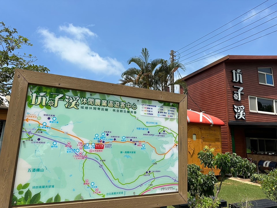 位於桃園市蘆竹區的坑子溪社區,連接坑子溪、大古山休閒農業區,擁有茶葉、竹筍、冬瓜、萵苣、甘藍等農產品,豐富自然生態造就多元發展的農場,以有機、健康、無毒的自然農法回歸純樸生活,體會綠色慢活的悠閒步調。
